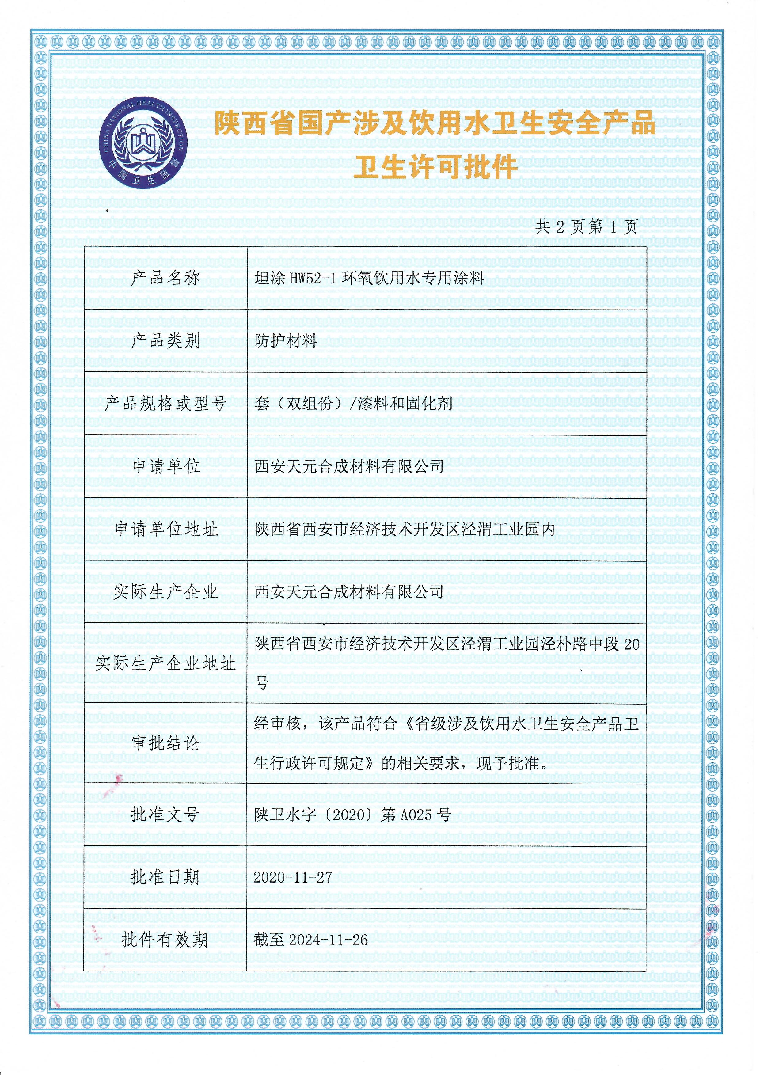 涉及饮用水卫生安全产品卫生许可批件(1)